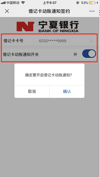 确定是否要开启借记卡动账通知?