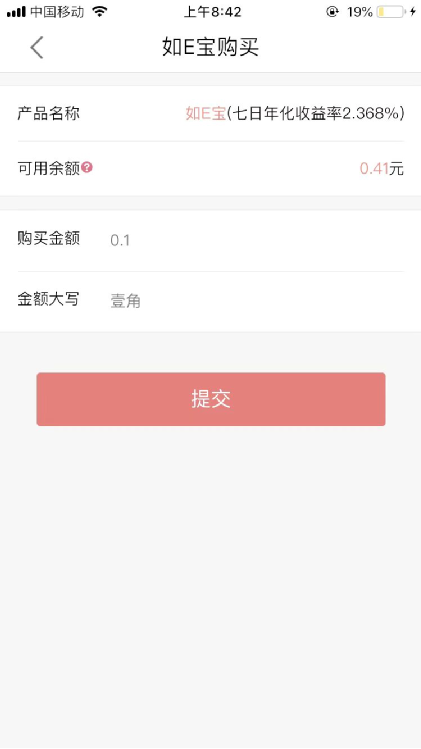 第五步:如有资金使用需求,可进入“如E宝”菜单,输入赎回金额,验证支付密码