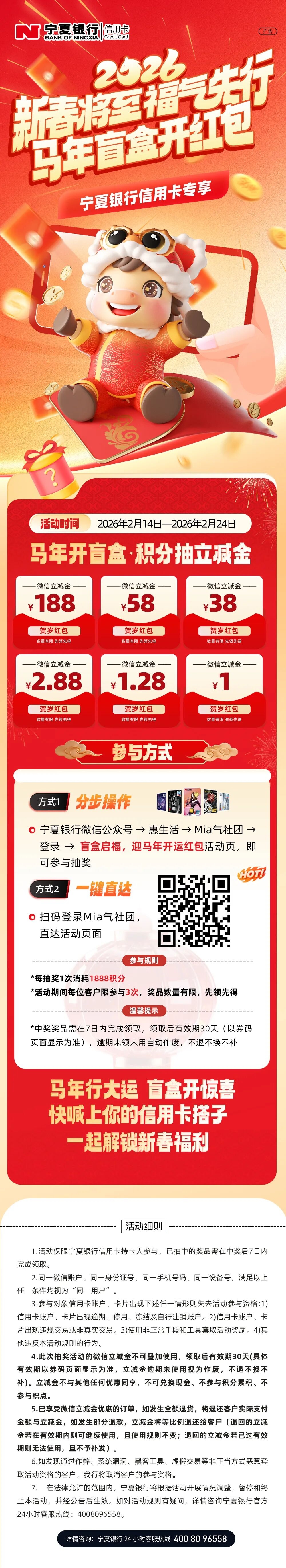 马年红包 信用卡积分抽奖 最高188元立减金